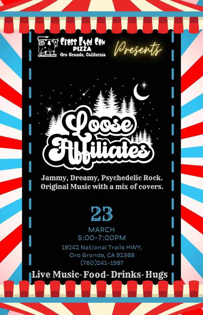 Saturday 03/23: CROSS EYED COW PIZZA, ORO GRANDE, CA