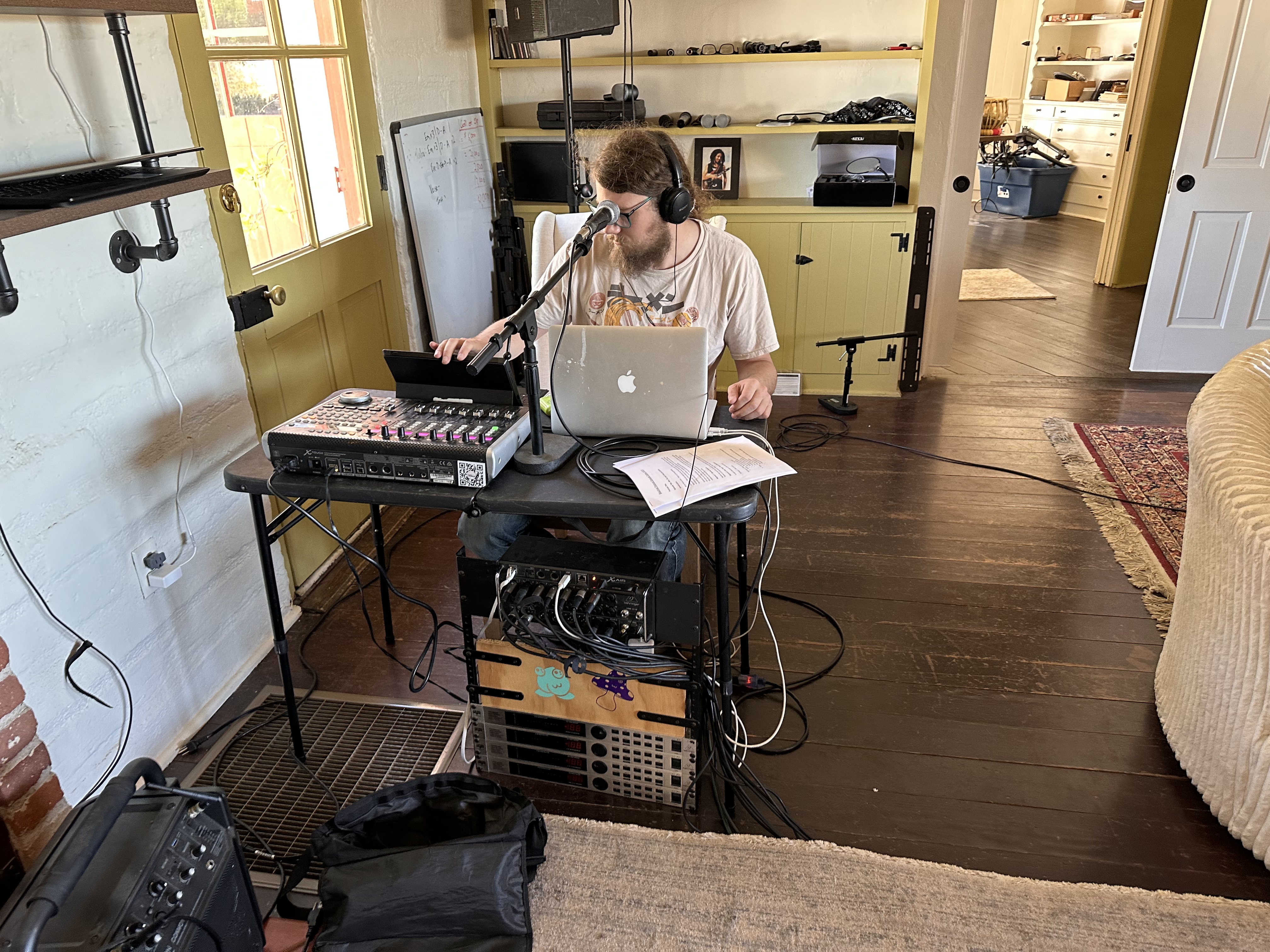 Honestly, it started out a bit scrambled. We had a guest coming, we had to test the mics and the cables, and the headphones…there are almost always going to be bugs in your system, even if you think you’re beyond such things. Never forget PEBCAK kids…but replace keyboard with whatever it is you’re trying to use and voila… user error, damaged gear, ghosts in the system, ADHD… Eventually though, we were rolling.