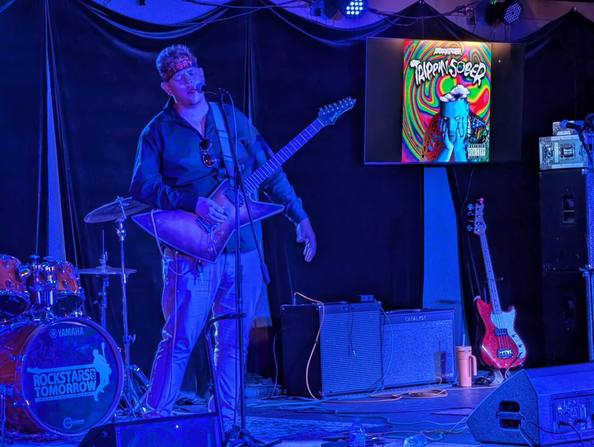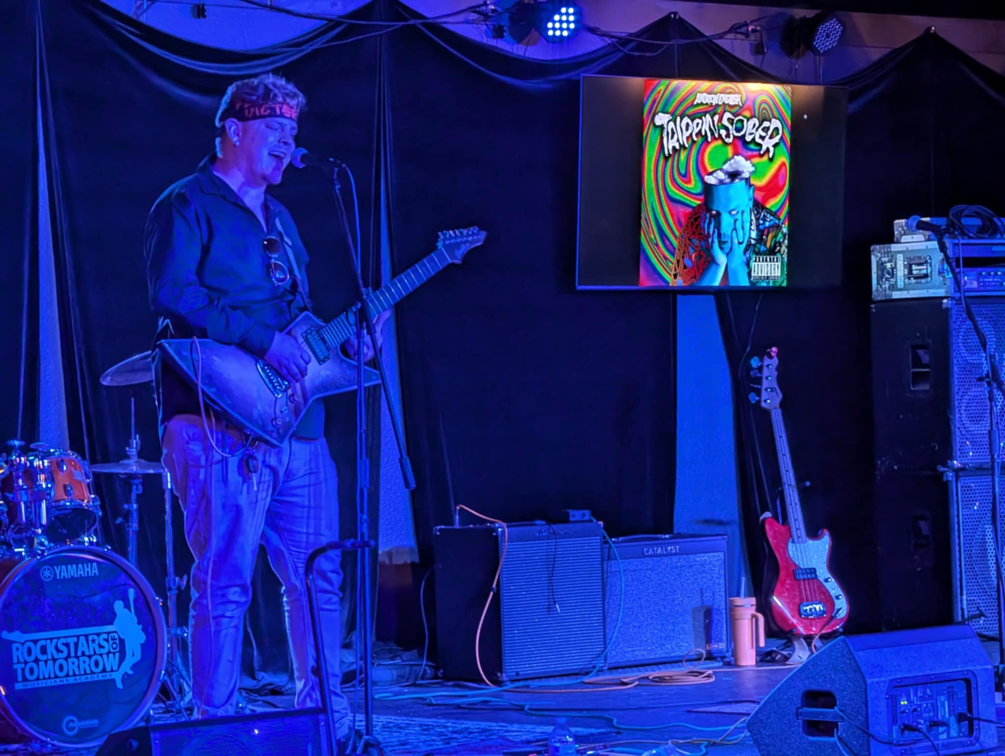 Trippin’ Sober Release – Speaking as a spectator this show was super chill and the music was a surprisingly fun mix of genres. The evening started off with Teddy Bob Rides Again, playing some southernish songs about substance abuse, and moved right along into an acoustic set from Chris Gonzales. Following that was Heavily Discounted, a killer band of teens playing some alternative rock favorites from the 90’s and early 2000’s. If you haven’t seen them yet, check them out, they are taking SoCal by storm. GHippy and the one and only Mahdski also did solo sets. I had never heard Mahdski before and I was told this was a special performance, but I’m surprised because he was really good. I hope I see more of him around at shows. The headliner, the reason we were all there, the man himself…I knew he was a good solo artist. I’d heard him do acoustic covers and things at Frogee’s years ago, before I knew who TDP was. To say I was surprised and impressed with his set would be an understatement. With a live band, a little live show engineering, and the right marketing this guy is going somewhere. I must say Andrew, your songs were unequivocally fucking bussing sir. Hat’s off to you. Congrats guys, I can’t wait to see how far you can take this.